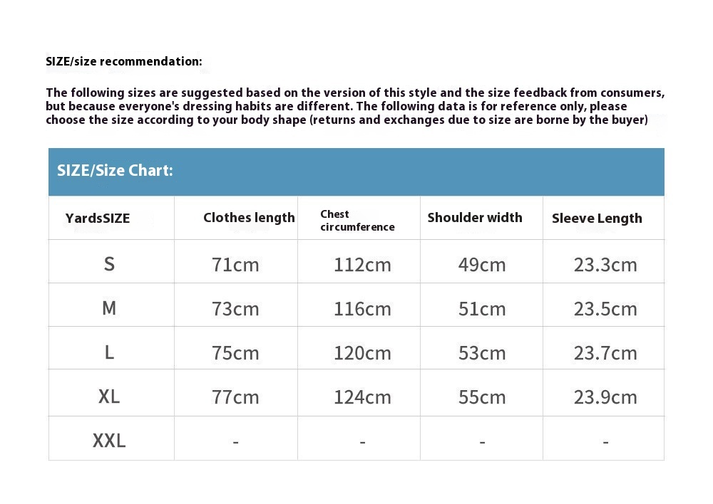 Note: 1. Asian sizes are 1 to 2 sizes smaller than European and American people. Choose the larger size if your size between two sizes. Please allow 2-3cm differences due to manual measurement. 2. Please check the size chart carefully before you buy the item, if you don’t know how to choose size, please contact our customer service. 3.As you know, the different computers display colors differently, the color of the actual item may vary slightly from the following images.