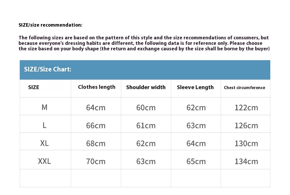 Note: 1. Asian sizes are 1 to 2 sizes smaller than European and American people. Choose the larger size if your size between two sizes. Please allow 2-3cm differences due to manual measurement. 2. Please check the size chart carefully before you buy the item, if you don’t know how to choose size, please contact our customer service. 3.As you know, the different computers display colors differently, the color of the actual item may vary slightly from the following images.