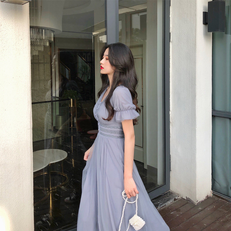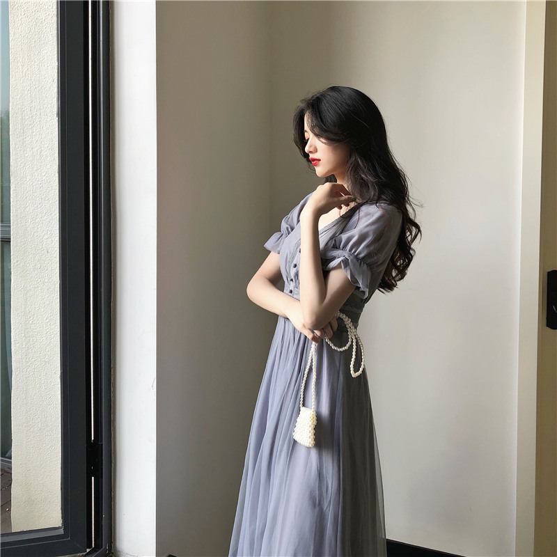 Color: gray blue dress, pink dress